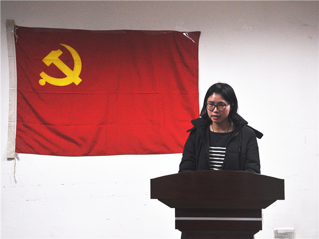 大会由支部书记刘昀同志主持。支部共有21名党员同志参加此次会议,其中正式党员8名,预备党员13名。在庄严的党旗下,全体党员起立,奏国歌,会议开始。支部大会针对姜晗昕、王俊雅两位同志在预备期各个方面表现能否转为中共正式党员进行讨论。