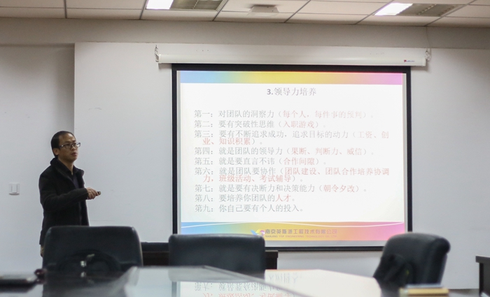 讲座伊始,谢佳华先生以幽默风趣的语言向同学们介绍了自己从大学到工作再到创业的心路历程,并告诉同学们,无论是考研,还是工作、创业,都需要多思考,发现问题,并解决问题。接下来,谢佳华先生结合自己的亲身经历,生动形象地向参加活动的同学介绍了如何培养领导力。领导力不是只有领导者才需要,实际上每个人都必须需要领导力。领导力是激发自己、影响组织氛围和实现目标的能力。谢佳华先生告诉同学们,培养领导力,首先要做到对团队对团队有洞察力,对每个人、每件事要有一定的预判;还要有突破性的思维,不断创新,为团队不断注入新的活力;要有不断追求成功、追求目标的动力;最重要的还是自己要有个人的投入,只有真心投入,一个团对才会强大。最后,谢佳华先生向同学们介绍了南京英斯派(inspire)工程技术有限公司的概况,并欢迎同学们前去参观学习。