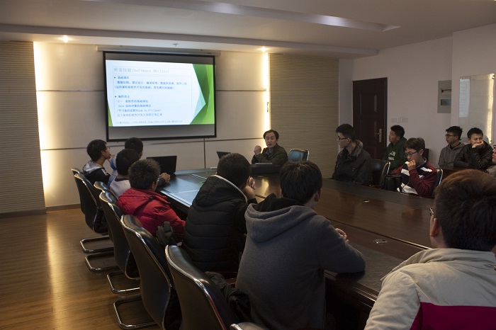 讲座上,马老师对从事计算机行业的所需技能、发展方向和目前趋势进行了详细的分析。他强调:打好基础是软件开发的关键。掌握一门基础的课程,如:数据结构、算法设计、编译原理等,是深入学习的前提。学会一门编程语言有利于对程序基础理论的理解,从而体会到一种语言的内涵与思想,而不是机械的模仿。他建议在场同学再学会一门可视化的简单语言,辅助开发。他还指出,大学生应努力获取机关单位的认证,认证书是正规的知识来源,是经过理论、实践、时间与市场考验的产品。