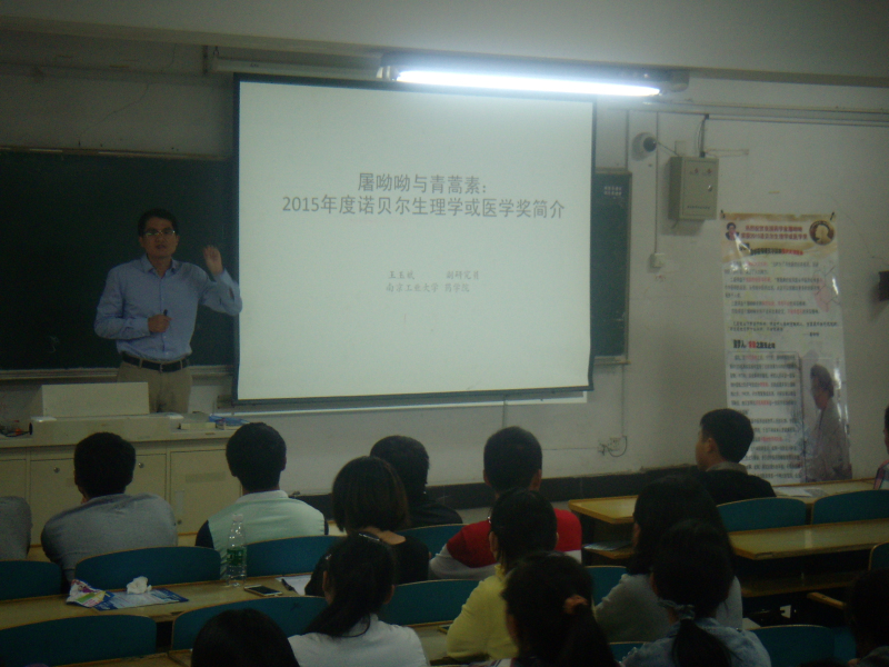 为了弘扬中国梦,进一步引导同学们将个人专业素质与民族梦相结合,10月20日下午15:30,由校团委主办、药学院团委承办的“屠呦呦和她的青蒿素”专业知识讲座在厚学楼101举行。讲座由药学院青年教师王玉斌副教授主讲,学院14、15两百余名同学参加了本次讲座。