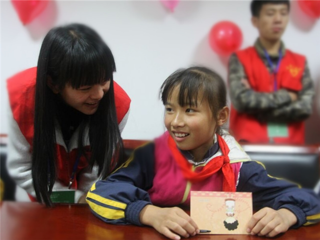 午饭后,孩子们来到志愿者精心布置过的生工A2楼208室。一到活动室,小朋友们被墙上、地上五彩缤纷的气球深深吸引住了,并迅速融入活动气氛中。志愿者还耐心地教孩子们写明信片,做手工,每个孩子都把自己对父母的思念写在明信片上。活动最后,每个小朋友都得到了由我院师生捐赠的爱心礼物。下午3:00,带着短暂的一天内收获到的满满的幸福和快乐,孩子们在志愿者的目送下离开了万博体育bet 。