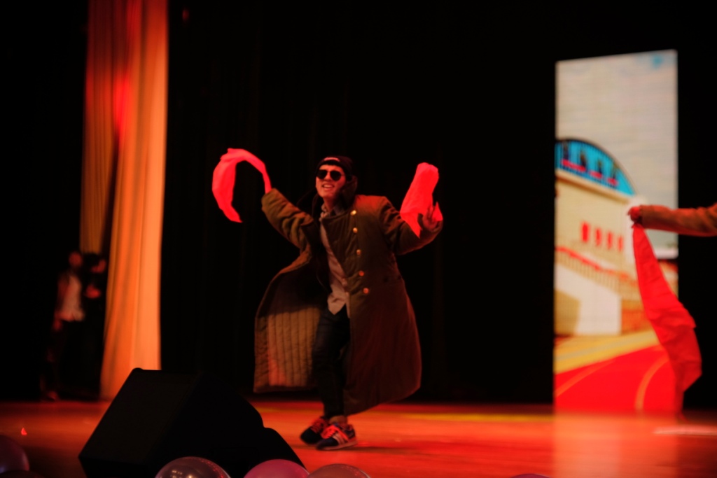 陌上花开,你我相逢。KOT乐队一曲《海阔天空》致敬经典,晚会在绚丽的灯光中正式拉开帷幕。乐队的倾情演出迅速点燃现场,歌词的贴切动人更是引发现场观众的共鸣。我们机械学子也必将会为理想不懈奋斗,即使风再大,雾再浓,但信念永不变。紧接着,大一女生为大家带来了一段动感热辣的舞蹈,帅气洒脱而不失妩媚,阐释了当代大学生对于梦想与自由的新注解。随后,话剧《中奖了》讲述了一个大一新生收到中奖短信,前去兑奖差点被骗的故事,诙谐幽默的表演引得现场观众捧腹大笑,同时具有一定的警示作用。由研究生和本科生共同演绎的经典歌曲串烧赢得观众一致好评,无论是独唱,合唱,还是吉他弹奏都使观众沉醉其中。研究生与本科生的合作彰显出机械学院团结协作,共同发展的工作理念。子不语汉服社带来的《国色天香》引起现场小高潮,青丝墨染,水袖舞动。充满中国风元素的舞蹈表演让同学们领略到了汉服之美,汉文化之精深。灯光逐渐暗了下来,吴南同学带来钢琴独奏《加勒比海盗》,这首凝聚着梦想同时又充满无限回忆的曲子使现场安静下来,观众都在细细聆听这柔美宁静的音符。接下来,全场灯光熄灭,黑暗中由大一新生带来荧光舞蹈《炫舞青春》,不见舞者本身,只见荧光移动,这是一场别致的视听盛宴。接着,由校舞龙舞狮队带来舞狮表演《醒狮》,鼓乐震天,狮跃龙腾,彰显着迅速发展中的机械学院如同雄狮一般活力无穷。观众热情高涨,双截棍表演《醉擎虹》紧接而至,灵巧的双截棍在演员手中挥动自如,更有绚丽的烟花表演,赢得观众阵阵掌声。随后研究生带来小品《开心就好》,幽默情节的设置加之研究生们诙谐生动的表演使得小品获得了极好的口碑。创意诗朗诵《当你老了》由大一新生演绎,伴随着手语表演与优美歌声,使得表演更具魅力。一段关于《当你老了》的采访视频更是直击观众内心深处,令现场许多人感动落泪。本科生辅导员王敏与研究生辅导员王巧云共同献唱《神话》,让机械学子领略到辅导员们平易近人的一面。最后,所有大一新生的助理班主任们表演了舞曲串烧。晚会在所有演职人员的大合唱中走向尾声。