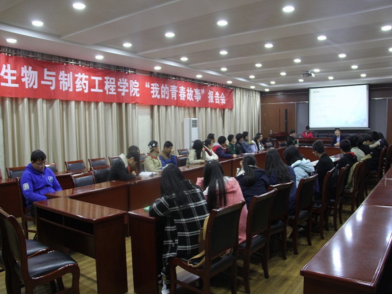 12月11日下午,生物与制药工程学院“我的青春故事之实验室篇”在生工楼报告厅举行。本次青春故事邀请的主讲人为博士生吴锡波与2013级学生林家辉,学院2015级新生同学参加了本次活动。