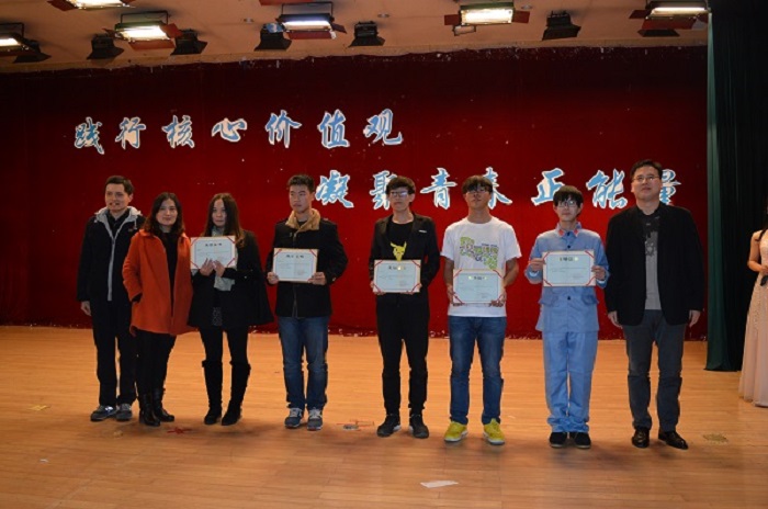 经过评委评分,最终,电智1501的影子剧《征程》以切合主题的表演内容和颇具创意的表现手法获得本届团支部风采大赛一等奖,电气1501等3个支部获二等奖,电气1502等5个支部获三等奖,与会领导上台为获奖支部颁奖并合影留念。