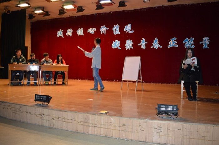 学院党委书记黄锁明首先致辞。他表示,本次大赛紧密围绕“践行核心价值观,凝聚青春正能量”这一主题,符合时代主旋律。希望全体同学能以参加本次大赛为契机,深刻领会社会主义核心价值观的深刻内涵,从点点滴滴做起,牢记习近平总书记“勤学、修德、明辨、笃实”的八字真经,扣好人生的第一颗扣子,充分利用宝贵的大学时光,全面提升自身综合素质,并祝愿本次大赛圆满成功。