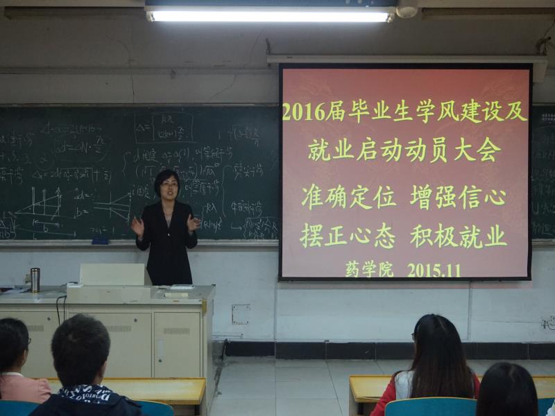 近年来,药学院始终把学生就业工作放在突出位置,并结合学院学生具体情况,积极着手,齐抓共管,大力推进,通过开展就业讲座和经验交流活动,帮助学生树立正确的就业观、择业观,为学生发展服务。此次会议是学风建设及就业启动大会,旨在引导同学生准确定位,增强信心,摆正心态,积极就业。人生的第一份工作对今后的发展方向有决定性作用,所以引次会议也是对同学们人生价值观的一次指导,望其真正找到一份自己满意的工作。