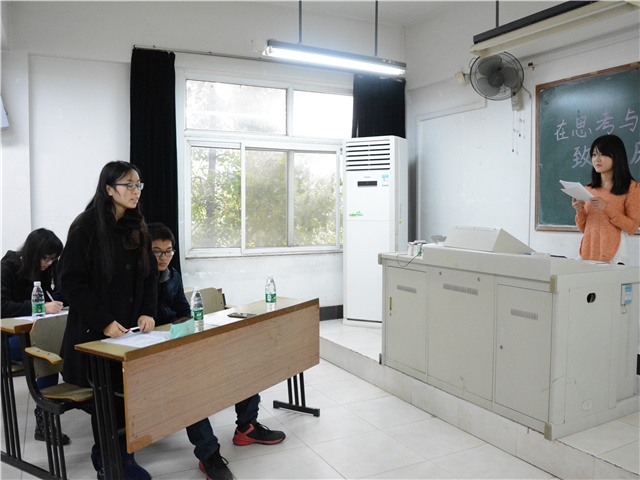 在评委评判和讨论期间,第三党支部设置了有关抗战历史的有奖回答环节,将活动的气氛推向了高潮。最后,由吴晨晨宣布辩论结果并颁奖,彭玲发表总结陈词,所有参加人员合影留念。