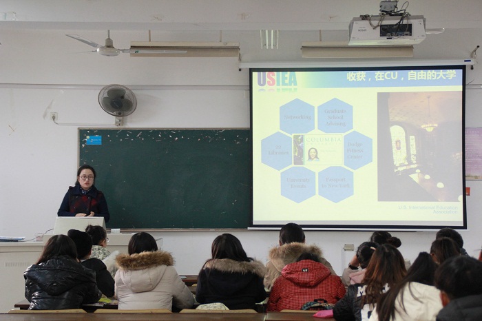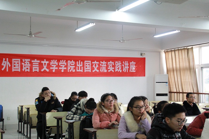 11月26日下午,外国语言文学学院举办的“出国交流讲座”在我校仁智楼226教室成功举行。本次讲座由全美教育协会华东区负责人程老师,朗格教育赵沧海老师以及来自美之旅的赵老师为大家交流赴美访学、留学及工作的相关经验,活动吸引了众多来自英语专业的同学积极参与。外语学院辅导员李田田老师出席并主持了本次活动。