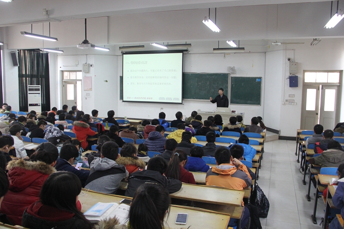 讲座开始前,王老师首先向同学们介绍了邵建峰教授,邵老师多年来从事本科生、研究生数学教学与全国数学建模竞赛的指导工作,具有丰富的教育教学经验。王老师要求同学们认真听讲,做好笔记,希望同学们通过这次讲座认识到数学的重要性并喜欢上数学。