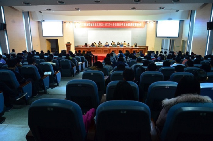 最后,院党委书记黄锁明讲话。黄书记充分肯定了学院2015年在学生教育管理、学科竞赛获奖等方面取得的突出成绩,并对在座的同学们提出了三点要求。第一,生存有基础。广大同学要读万卷书,行万里路,从各方面努力提高自己的知识技能和核心竞争力,为将来走向社会生存打下基础。第二,生活有追求。如果没有追求,没有理想,没有目标,将会迷失自己,会感到空虚迷茫。因此,要永远执着于对真善美的追求,即努力学习知识,追求真理,做到科学求真;用社会主义核心价值观要求自己,提升做人境界,做到人文求善;不断丰富人生,善于发现和体悟,做到艺术求美。第三,生命有价值。生命的意义不仅仅在于它的长度,更重要的是要有足够的宽度和深度。人的生命是有限的,但是要利用这有限的生命创造出无限的价值,要利用自己的所学所获努力为国家、为社会、为他人做出贡献,在创造价值中体现生命的意义。黄书记希望同学们能充分利用大学四年的时光,把握现在,珍惜未来,并祝愿同学们能收获一个精彩的大学生活。
