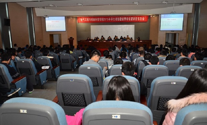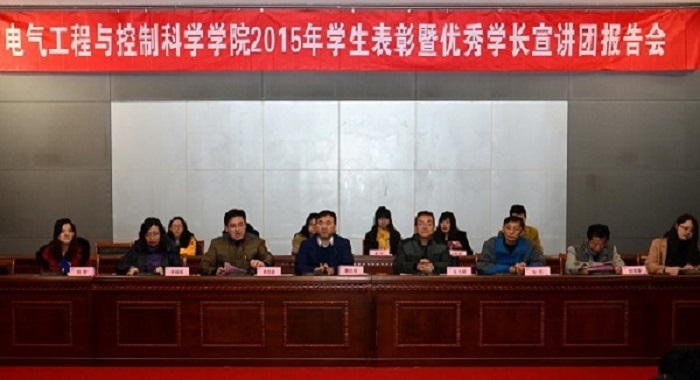 为了表彰学院在2015年涌现出的学生先进集体与先进个人,进一步树立优秀典型,营造优良学风,12月23日下午,电气工程与控制科学学院在图书馆一楼报告厅举行2015年学生表彰暨优秀学长宣讲团报告会。院党委书记黄锁明、副院长张九根、院党委副书记季宜敬、院办主任孙世荣、学办主任刘雪、各系主任、全体辅导员、2015级和2014级学生代表出席了会议。会议由院党委副书记季宜敬主持。