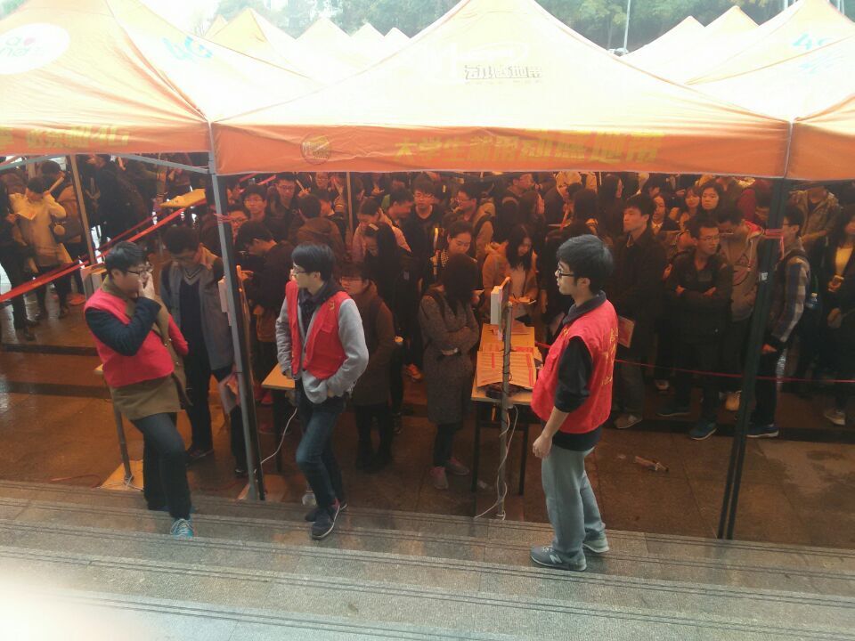 招聘会当天早上7点50,同学们就早早的在体育馆门口集合,接受招聘会工作人员的指示安排。不一会,体育馆外已是人山人海。同学们在大二就提前领略到了招聘会的现场规模,能够对就业现状和行业形势有初步的认识,了解用人单位对毕业生的要求,所以都很珍惜这次的志愿服务,希望在活动的同时能从中学习关于就业的知识。志愿者们被分为两组,一组在大门外维持秩序,一组指引远道而来的用人单位到其所在展位。志愿者们精神抖擞,时刻保持最佳状态。引导时热情而适宜,带领用人单位到达展位后,还会帮助用人单位解决一些小问题;维持秩序时丝毫不慌乱,使得现场自始至终都井然有序……这些,给用人单位和应聘学生都留下了良好的印象。会中,志愿者们被有序安排在指定位置,向单位和学生提供力所能及的帮助。招聘会结束后,志愿者们迅速进入收尾撤展工作中。将桌椅叠放收纳到指定房间,拆卸铁架,撤下横幅、海报,并打扫好卫生,使体育馆又恢复原状。