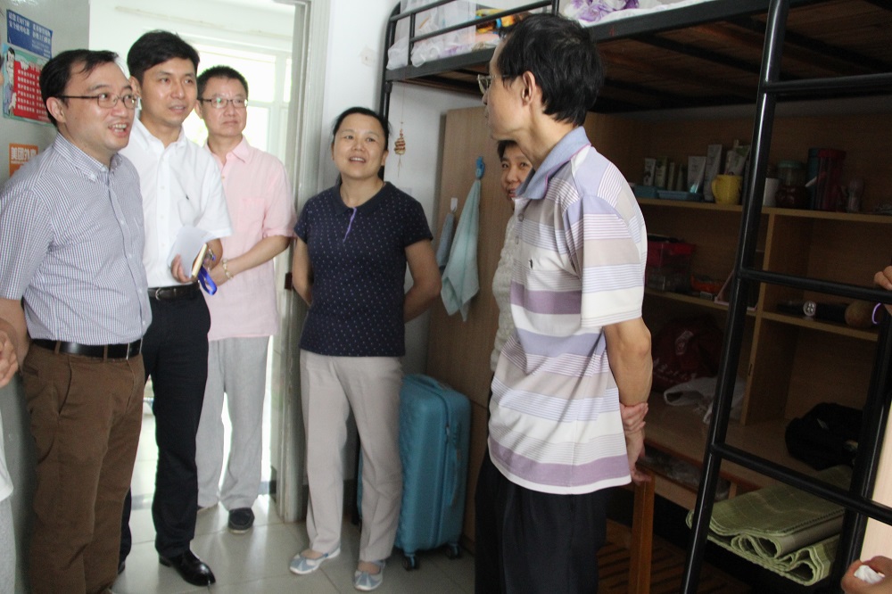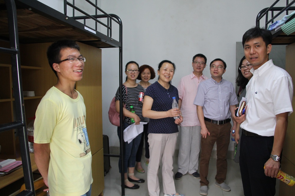 9月5日下午,生物与制药工程学院党委书记姜岷、院长韦萍、党委副书记周辉、副院长李振江等一行前往西苑和新南苑的2015级新生宿舍进行走访和慰问。