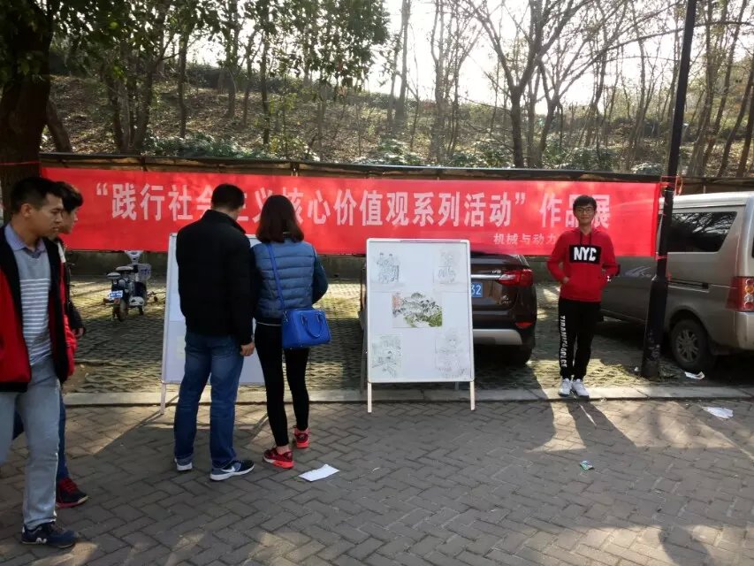11月29日上午,机械学院践行社会主义核心价值观系列活动之绘画比赛作品在东苑食堂前展出。本次比赛面向机械学院全体学生,旨在丰富万博手机版官网登录网页 生活,营造艺术氛围,提高学生的综合素养。通过绘画比赛的形式,培养学生的艺术修养,响应践行社会主义核心价值观的号召。