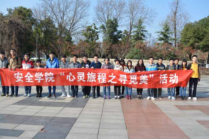 下午一点一刻,所有的参赛的队员们在我校南门集合完毕。为让活动有个好的开始,在集合完毕后所有的参赛人员都站成一排,手拉横幅,在南门广场前合影,并且由安全学院心协负责人简要讲解了本次活动的形式、规则,以及预备方案。下午一点半活动准时开始,八组组长根据活动开始前各自选择的路线,带领着队员去完成路线中相应的任务以及寻找下一站的提示卡。本次活动中,各队参赛队员争分夺秒,一路狂奔,斗智斗勇,第一支队伍,由土木学院两名同学和安全学院一名同学组成的队伍于下午两点半顺利到达终点。接下来,其他几支队伍也都陆陆续续的到达了天宝阁。在由裁判员审核完所有队伍的任务完成情况后,心协负责人宣布了本次比赛的结果,并为优胜的四支队伍颁发了奖品。活动最后,各队伍在天宝阁前合影留念。