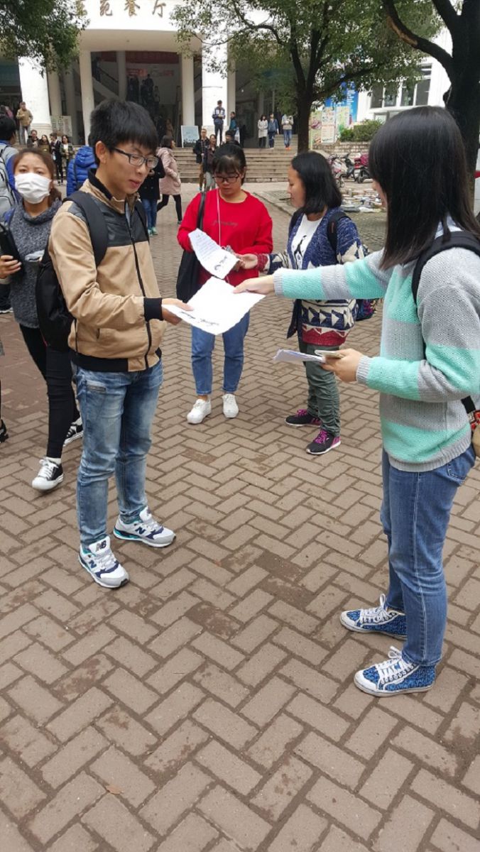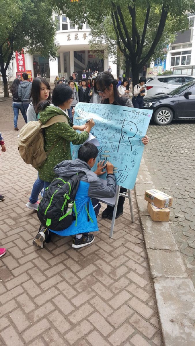 活动伊始,同学们有序分配好了任务,带着自制的材料布置好场地,自行分组前往各大食堂进行活动。活动期间,测控1502班的同学们向食堂门口的同学们发放了光盘行动的倡议书,普及宣传光盘行动的相关知识及必要性,让同学们了解光盘行动的必要性,并号召同学们在宣言展板上认真地签下自己的名字,以示加入光盘行动的决心。很快,在测控1502班同学的宣传下,同学们纷纷前来签名。