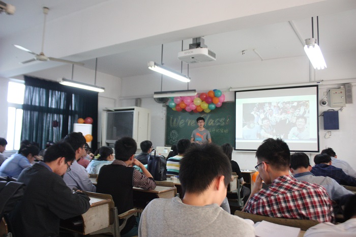 下午4:00,活动在同学们的期待和掌声中准时开始。抽签后,计软1501班第一个上场,由宣传委员阮辰辉从学风建设、班风建设、宿舍文明、精神风貌等四个方面向大家展示班级建设成果。他流畅的表达生动地展现了计软1501班的青春活力。随后上场的是通信1501班,由班长刘潇博对班级进行展示。刘潇博首先总体概括了通信1501班在文体活动、学习成绩、公益活动等方面取得的成绩。从各项成绩中可以看出,通信1501班是个团结、互助、集体荣誉感极强的班集体。黄英燕老师还就如何确保班级每位同学对班级活动的参与度提出问题。刘潇博认为应当与个别“问题”同学从朋友做起,吸引他们融入到集体中来。这一回答得到了在场老师和同学的一致认同。之后上场的是计1503班,团支书徐超介绍了计1503班参观侵华日军南京大屠杀遇难同胞纪念馆、文化衫设计活动、书评活动等各项活动。最后他还提出了计1503班“三人行,必有我师焉”的学习精神。之后计1501班、计软1502班、电子1501班等班级纷纷上场展示本班的风采。