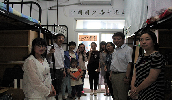 6月22日中午,测绘科学与技术学院党委书记段然堂、院长李明峰、副院长吉文来、副院长徐敬海、学院老领导申勤俭、学办主任蔡杰、毕业班辅导员钱婷、教师冯宝红等分组到2017届毕业生宿舍与毕业生话别,送去问候和祝福。