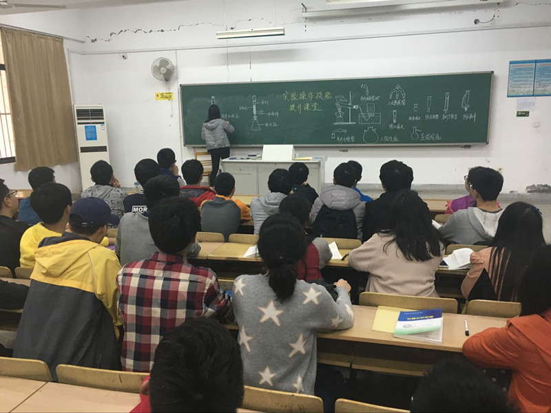 首先,我们在教室里进行了相关学习,通过对化学实验基础的各项仪器及相关操作进行了一一回顾,让同学们认识到正确实验操作对于实验安全以及实验进行的重要性,在现场同学们认真听讲,努力反思,对照自己的实验操作进行了思想上的纠正。课堂学习过后,同学们都切身感受到了自己以前的不足,也对自己实验操作技能的提升感到了喜悦。我们将会在下次的实验课对我们的学习成果进行检查,确保大家都熟练的掌握。