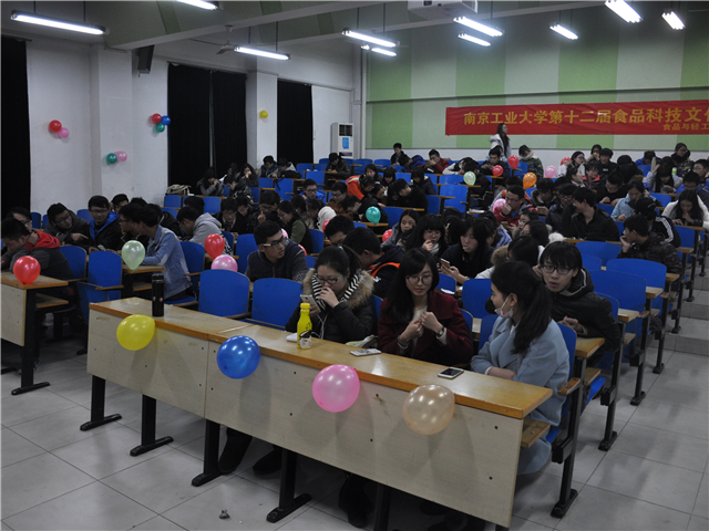 12月20日下午1:30,食品科技文化节的决赛于厚学300室举行。本场参赛队伍不仅有食品学院的三支队伍,还有来自南京农业大学、南京林业大学、南京师范大学的代表队。各个学校都准备了精美的PPT来介绍自己的大学。主持人介绍了本场比赛分为必答题、抢答题、观众互动、活动加分四个环节。经过激烈的比赛,已经决出胜负,但名次之外更重要的是与外校同学间的交流。