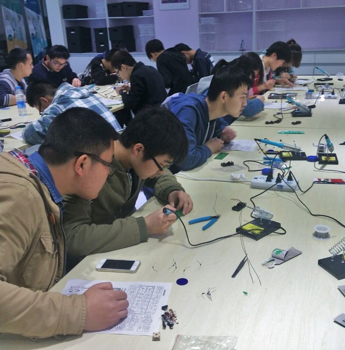 4月6日至4月7日,我院同创客梦工场协助教学事务部开展了了以“焊接思维火花,连通梦想之路”为主题的电子焊接技能实践暨校级电子焊接大赛。活动分为两个部分,分别是4月6日的电子焊接讲座与4月7日的电子焊接比赛。该活动共吸引了来自14个学院的178名同学报名参加,在比赛过程中同学们不仅提高了自己的动手实践能力,更加增强了彼此之间的合作意识。