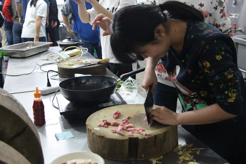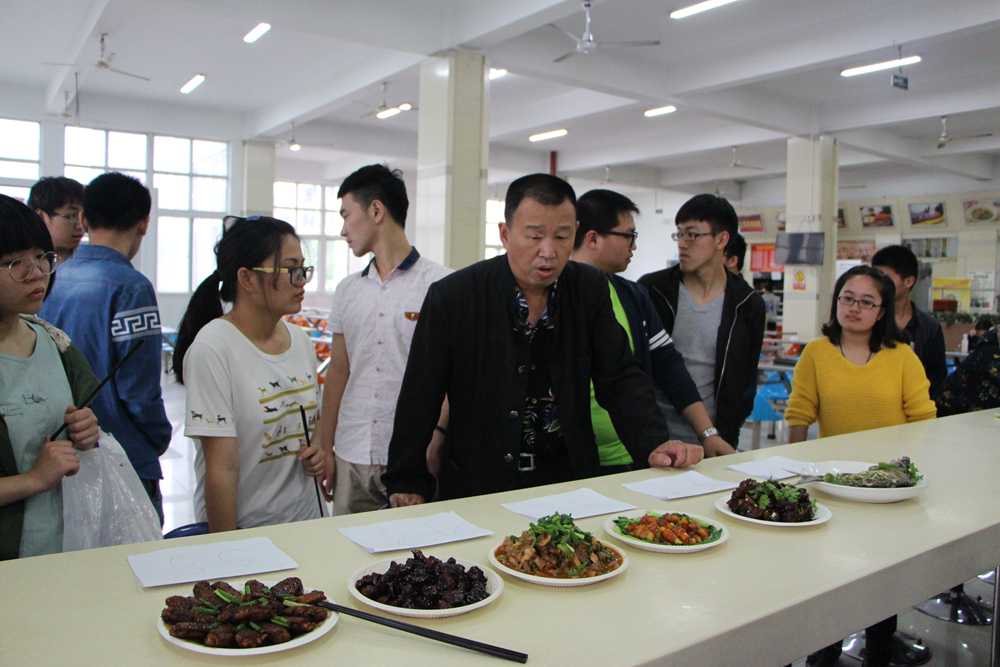 晋级宿舍分别是3个男生宿舍:东苑331、421、423和2个女生宿舍:西苑401-1、403-1。下午1点半,所有参赛队伍均已到达南苑食堂厨房,开始准备食材,熟悉赛场。大家虽是机械学院的工科生,但也是上得了厅堂,下得了厨房。平时埋头画设计图的工科男摇身一变,砧板上切菜刀工细腻,做菜时有条不紊,尽显煮男魅力。机械学院的女生更是展现贤惠风采,处理手中的鱼时,不慌不忙,就像在家里厨房做着家常菜般轻松,时不时还和身边的人开起了玩笑,准备过程轻松而愉悦。经过半个多小时的准备,食材陆陆续续的下锅了,真正考验厨艺的时候也到了。所有队伍都表现得驾轻就熟,没有遇到下油锅时的兵荒马乱,大家都以纯熟的表现征服了现场的观众。在烹饪过程中遇到困难的时候,食堂的厨师师傅们纷纷伸出援手,耐心地给予参赛选手一些烹饪意见和烹饪方法的指导。在参赛队员的努力和师傅们的帮助下,所有人都在规定时间内轻松完成了烹饪及摆盘任务,一道道色香味俱全的菜肴便出炉了。选手们选用最常见的菜品做出了不一样的风味:清蒸鱼、红烧排骨、薯条肉串、红烧肉、可乐鸡翅。一道道菜肴香气诱人,引得现场试吃观众迫不及待。后勤集团的钟主任对本次厨艺大赛还进行了煮菜技巧的传授,指出现场参赛队员的菜肴颜色偏重,在炎炎夏日,清爽的颜色更能增加食客们的食欲。除此之外,钟主任还把自己做啤酒鸡,红烧肉的独家小窍门倾囊相送。他说在烹饪时候放一瓶啤酒可以更入味,烹饪快要结束时再放另一瓶啤酒进行收汁,能让整个菜肴充满啤酒的香味,更加可口。现场观众们纷纷表示又学会一招。随后机械学院学生会的评委团以及两位厨师师傅,通过对菜品色泽外观、口感味道、特色创意等方面的进行了综合打分。在场观众也纷纷试吃,选出自己心中的“厨王”。最终,东苑331宿舍制作的红烧排骨征服了现场评委和观众获得第一,东苑423宿舍制作的可乐鸡翅和西苑401-1宿舍制作的的清蒸鱼分获二三名。