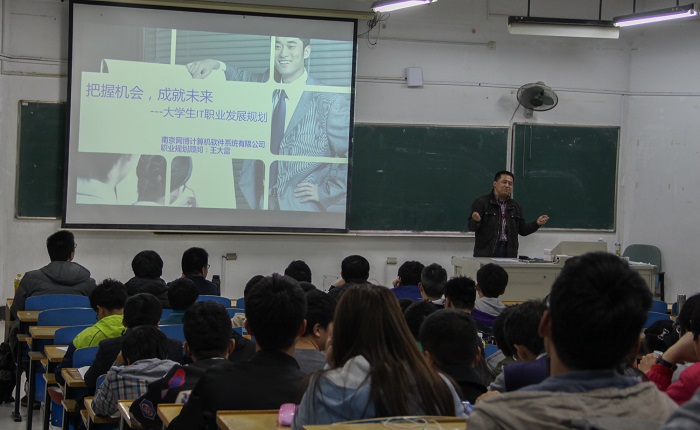 为了帮助同学们规划好四年的大学生活,明确人生的追求目标。3月21日下午6点,南京网博计算机软件系统有限公司职业规划顾问王大雷老师为计算机科学与技术学院2015级全体同学开设了题为“把握机会,成就未来”的大学生IT职业发展规划讲座。计算机科学与技术学院党委副书记郑娟,2015级辅导员季君出席了本次讲座。