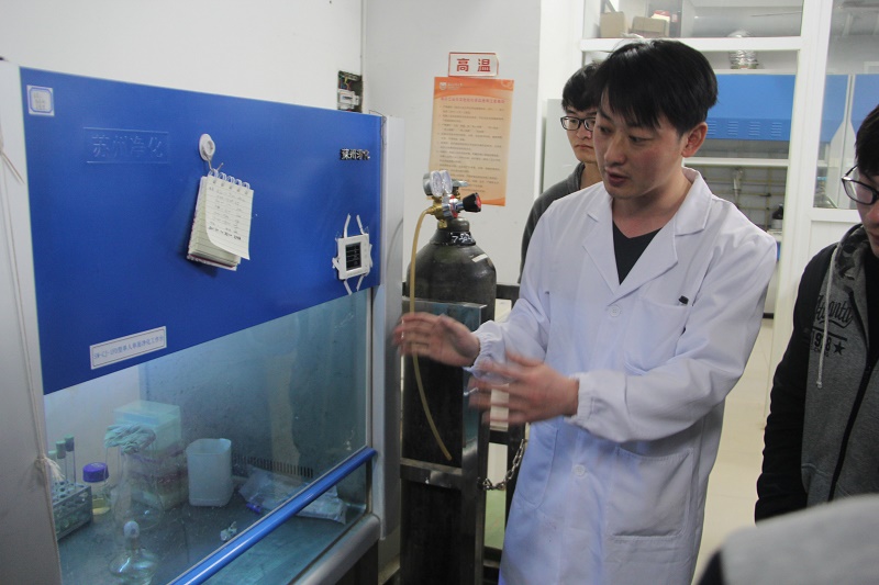 活动开始刘洋老师首先介绍了微生物学相关知识,刘老师旁征博引,讲解得妙趣横生,不时赢来同学们热烈的掌声。在刘老师的带领下,同学们走进微生物实验室进行参观。实验室整洁的环境和浓厚的科研氛围深深感染了在场同学。在实验室中,刘老师给同学们介绍了电子显微镜等精密实验设备,并仔细示范讲解了电子显微镜的使用方法和注意事项,为本月即将举行的“微生物作画”比赛奠定了基础。接着,实验室的研究生同学为同学们演示了制作和观察切片的过程。大家在学习切片的过程中领悟到实验技能培养的重要性以及做实验贵在持之以恒的道理。最后,同学们在研究生的带领下参观了黄和教授的实验室,气质联用色谱仪、自动进样液相色谱仪、酶标仪等玲琅满目的仪器设备,厌氧操作平台、分子模拟平台以及整齐摆放的种类繁多的实验药品等激发起在场所有学生对科研道路的渴望。不少同学用手机记录下自己感兴趣的设备,活动在热闹的讨论交流中结束。