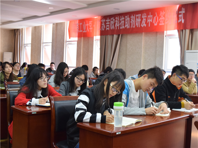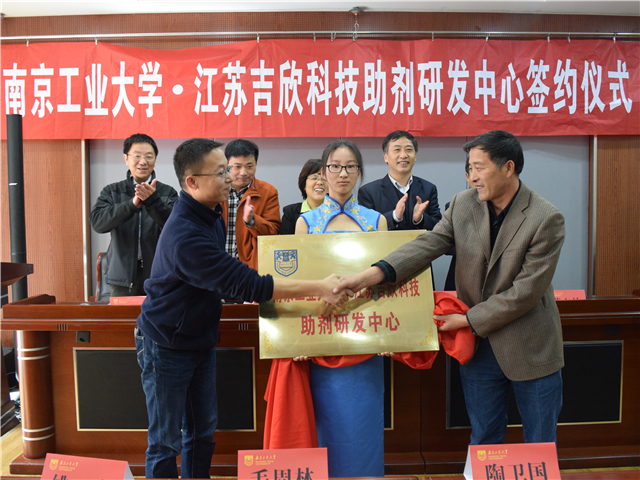 接下来是万博体育bet ·江苏吉欣科技助剂研发中心签约仪式。到场嘉宾有我院院长徐虹教授、院党委副书记熊强教授、副院长姚忠教授、江苏吉欣生物技术有限公司总经理董吉林先生。我院院长徐虹教授为签约仪式致辞,表达了对盱眙县科技局以及江苏吉欣集团的热烈欢迎。最后,吉欣生物科技有限公司总经理董吉林先生以一番真诚的讲话赢得了阵阵掌声。在掌声中完成了签约仪式,全体签约人员合影,至此,签约仪式圆满落幕。