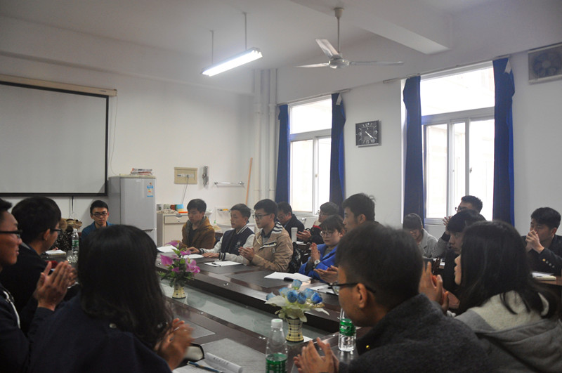 会议伊始,五位学长和学姐就班级和团支部建设、班级学习成绩等问题谈了各自的经验。接着是交流环节,同学们踊跃发言,针对自己在班级事务管理或班级活动开展过程中遇到的问题向学长学姐发问,学长和学姐认真分析了同学们的问题,对症下药,提出了自己的意见与建议。