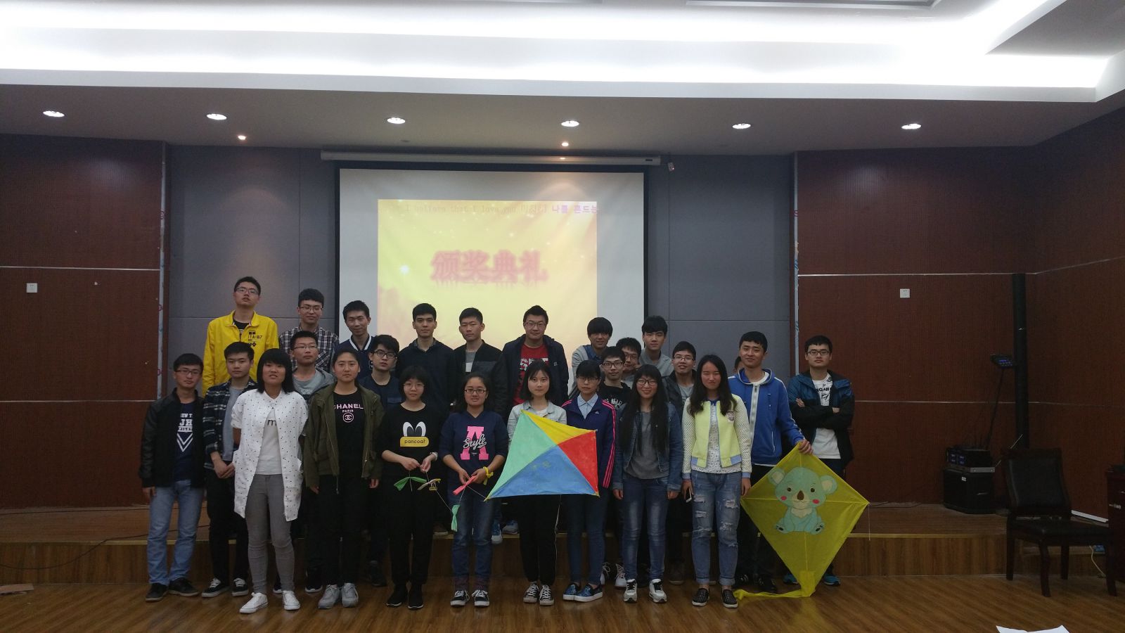 室外放飞结束后,全体人员来到机械E楼四楼报告厅进行本次活动的展示环节。参赛队伍结合PPT就风筝的制作过程、设计理念进行了讲解。选手们言谈大方得体,讲解幽默风趣,现场氛围非常活跃。其中过装1502班参赛队伍带来的风筝"飞翔的考拉"令人印象深刻,他们以油画棒绘制风筝图案寄托童年回忆,以考拉飞向蓝天呼吁大家奋发向上,从童年追忆谈到大学生的生活现状,引人深思。活动最后,新能1502班代表队以两轮成绩最高分赢得一等奖,过装1501和过装1502班代表队夺得二等奖,车辆1501、机械1503以及高材1502分获三等奖。