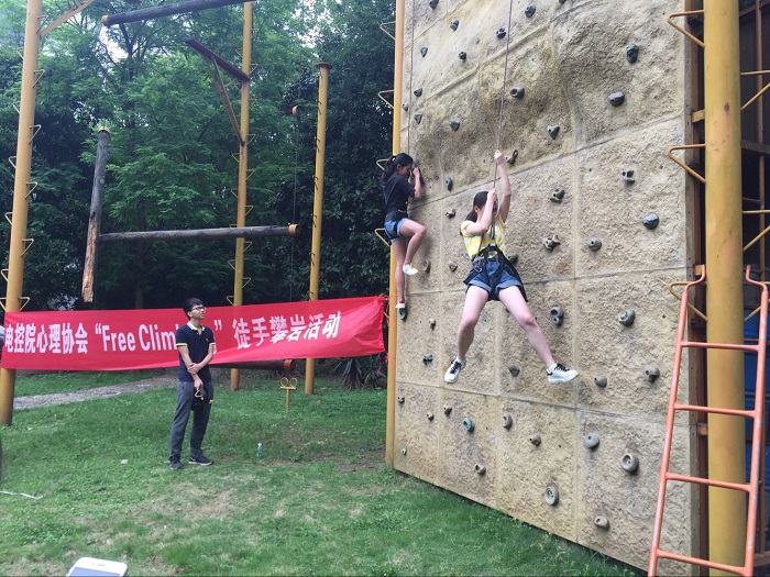 随着新媒体的普及,大学生的日常生活越来越局限于以手机和电脑为中心的一方小小空间,为进一步促进大学生“走下网络、走出宿舍、走向操场”,推动群众性课外体育锻炼活动常态化、机制化,增强同学们强化身心素质的意识,丰富万博手机版官网登录网页 ,近日,电气工程与控制科学学院“心晴”协会在拓展运动场面向全校学生开展了“free climbing”攀岩大赛。