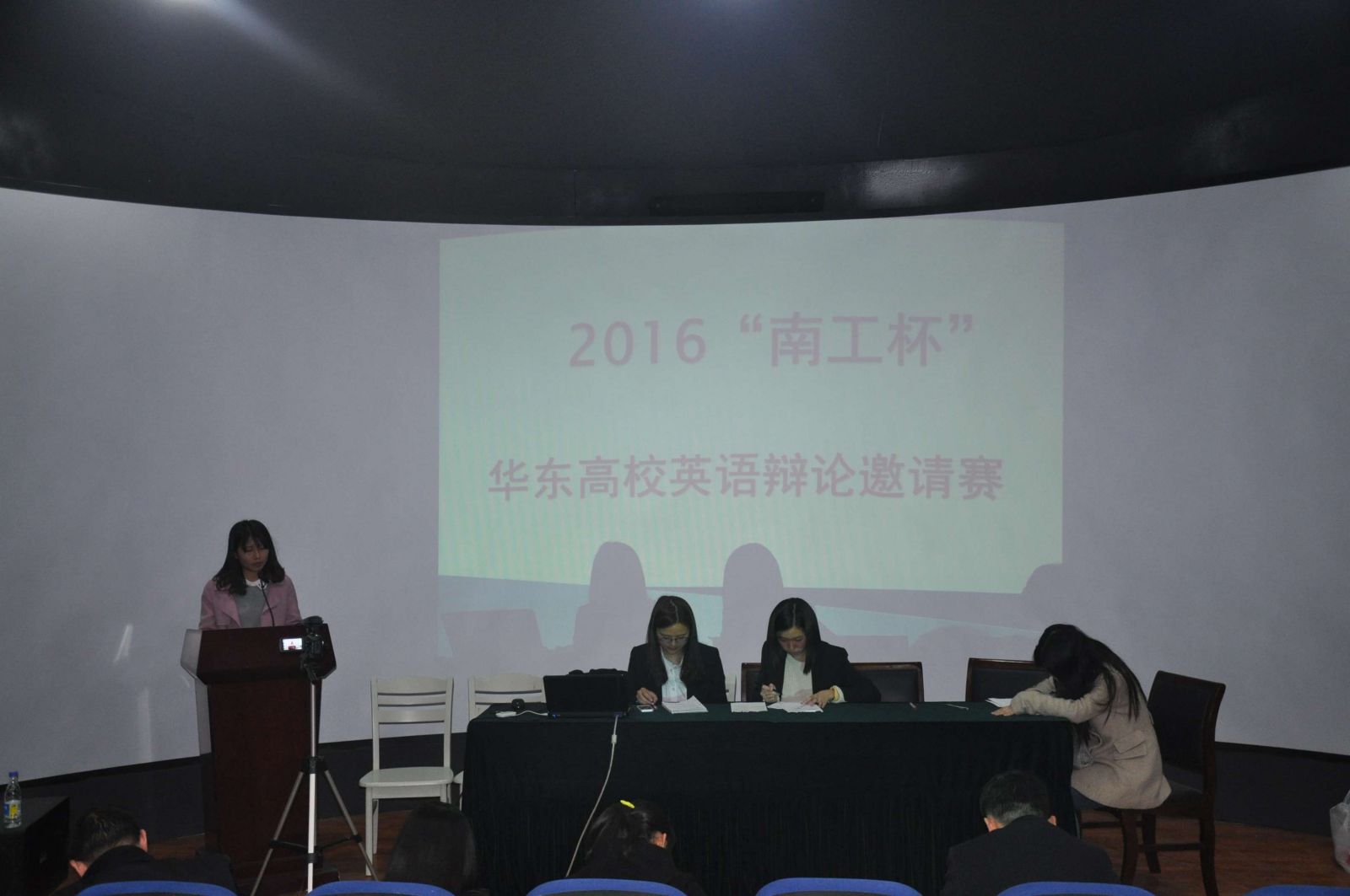 此次辩题紧跟时代的步伐。围绕社会焦点问题,裁判给出了四个辩题,48位选手有序地到五个分会场进行比赛。在每一轮辩论中,赛场气氛紧张激烈,双方辩手你来我往,侃侃而谈;旁征博引,奋力角逐。经过四轮的精彩比赛以及各裁判的公正裁决,最终进入决赛的是来自上海交通大学,南京师范大学,南京林业大学及金陵女子大学的代表选手,他们针对“工业化国家是否应强制接收气候难民”的辩题阐明各自的观点。