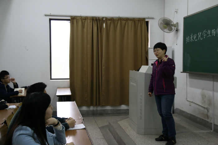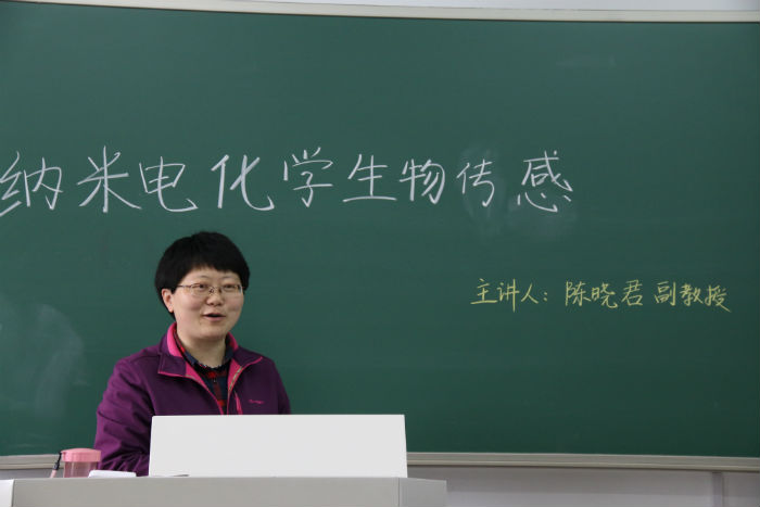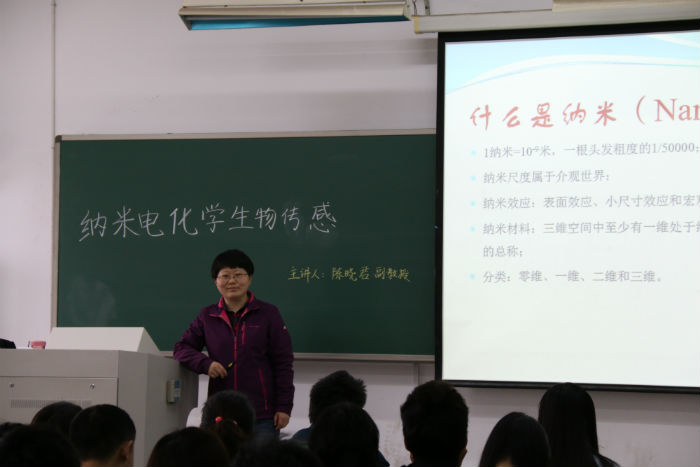 2016年4月6日上午学术调整周之际,化学与分子工程学院陈晓君老师在浦江A403为学院近百名同学做了一场题为“纳米电化学生物传感”的生动讲座。
