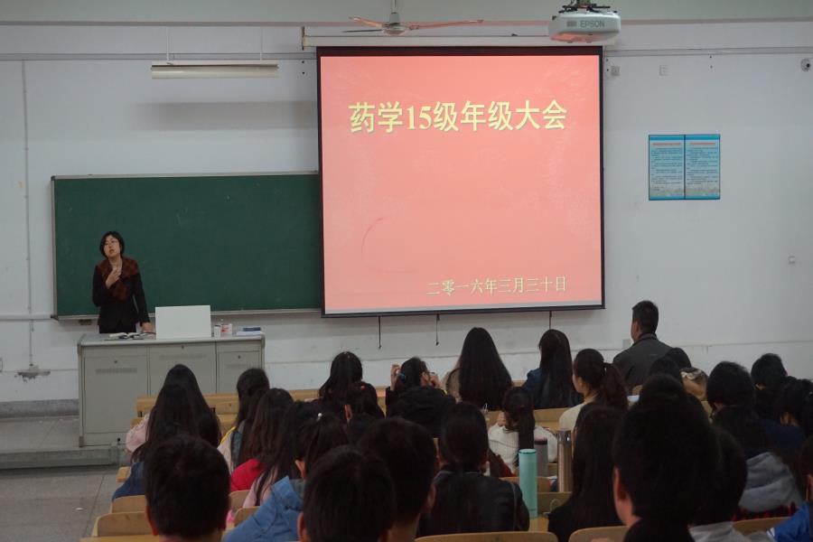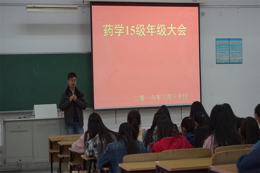 为加强学风建设,营造良好的学习氛围,2016年3月30日下午2点,药学院15级年级大会在浦江B404召开。出席本次会议的有药学院党委副书记张琪教授,辅导员王涛老师及15级全体学生。