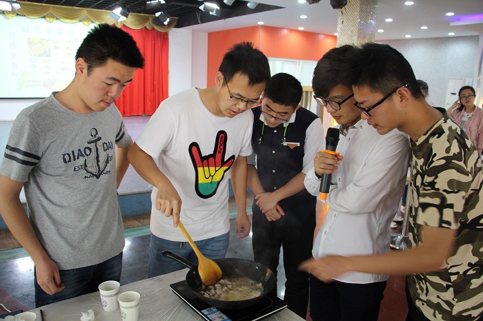 5月14号,南工校内的阳光含蓄而温暖,一缕阳光调皮的透过玻璃窗,照射在为即将到来的火热比拼而紧张有序地进行准备活动的选手们身上,第二届厨神争霸赛于上午9时许在大学生活动中心正式拉开序幕。