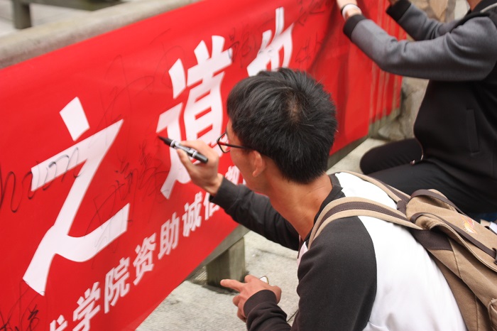 助学贷款是普通高校资助政策体系的重要一环。借款学生通过学校向银行申请贷款,用于弥补在校期间各项费用不足,毕业后分期偿还。目前,我院共有120余名同学办理各类形式的助学贷款。为了提醒同学们按时还款,对自己的行为负责,对自己的诚信负责,计算机科学与技术院于6月3日中午在学科楼下举行了资助诚信教育签名活动,我院所有办理助学贷款的同学参与了此次活动。