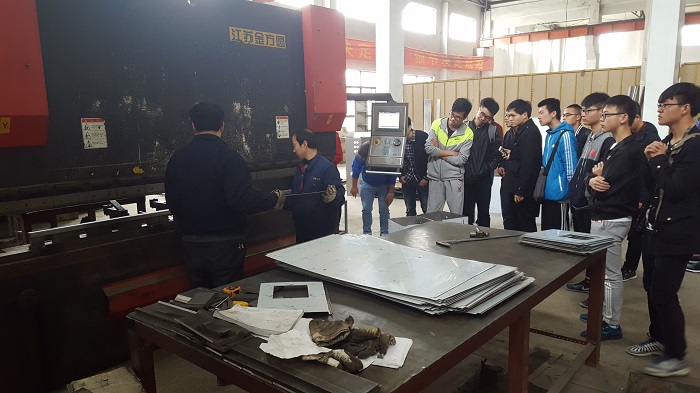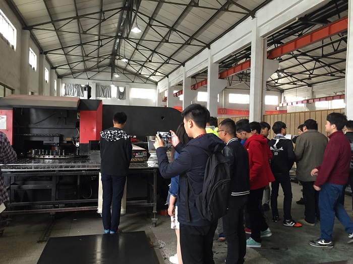 上午九点半,同学们在老师的带领下驱车前往南京瑞联电气公司。公司负责人陈总经理向学生们介绍了公司的发展历史、目前主要承接的项目,并结合同学们所学专业和当前的就业形势进行了分析和交流。学生们听得聚精会神,不时和陈总就企业对人才的要求、专业发展前景等进行交流,现场气氛活跃。随后同学们在专业工程师的带领下,参观了集装箱成型车间、数控加工车间、清洗烘烤车间。一个个配电柜、一台台数控机床引起了同学们的极大兴趣,大家纷纷上前仔细观察并不时询问一旁的工人师傅关于生产加工过程中的注意事项、加工原理、工作细节等。参观结束后,院党委副书记季宜敬代表学院与南京瑞联电气公司达成协定,在该公司设立大学生创新实践基地,为积极推进校企深入合作、开展持续性创新实践活动提供了良好的基础。