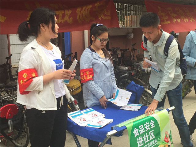5月13日中午,为动员社区居民关注食品安全,增强食品安全意识,普及食品安全知识,食品学院励志学社特别举办了以“食品安全宣传进社区”为主题的系列活动。活动的第一期志愿者们走进了秦淮区西华东村社区。