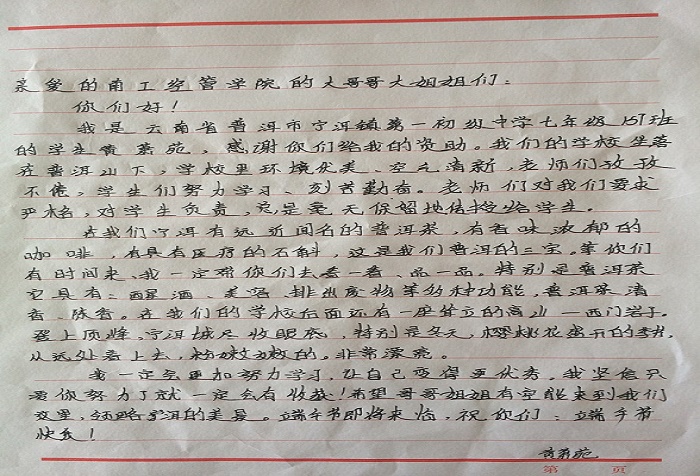 在本次活动中,经济与管理学院学生联合会志愿服务部组织成爱心团队,招募了几十余名志愿者,开展了“收集旧物”、“物资整理”、“摆摊义卖”等一系列校园互动体验活动。5月22日和28日两天,现场义卖活动分别在东苑食堂和象山举行。虽然活动当天骄阳似火,但丝毫没有动摇广大师生奉献爱心的热情。大批老师、同学加入到奉献爱心的行列,货品开售半小时即出现了多件商品脱销的场面。6月7日,在我校研究生支教团的帮助下,全部善款送到了宁洱一中两位成绩优异的初一贫困生手中。并承诺未来两年继续资助,直至两位同学完成初中学业。让我们非常感动和意外的是,6月15日收到了被资助学生的感谢信,让所有志愿者都为自己的辛勤付出感到值得和满足。
