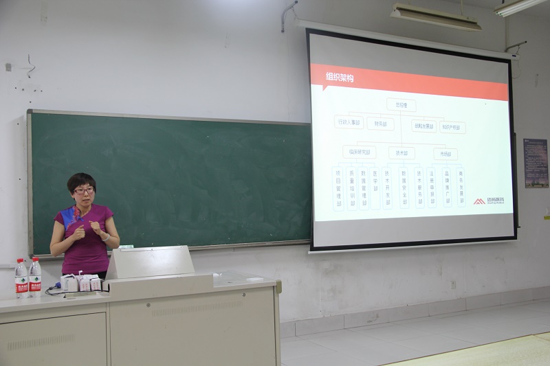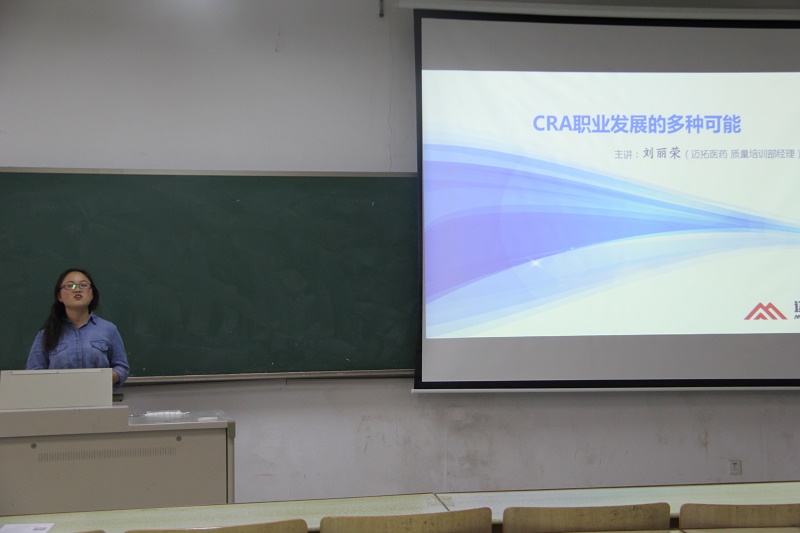 讲座开始,乔文首先就临床实验CRO的行业概况向在场同学进行了简单的介绍:CRO主要包括临床试验方案和病例报告表的设计和咨询,临床试验监查工作,数据管理,统计分析以及统计分析报告的撰写等等,非常适合生物与制药工程专业的学生。紧接着罗莉向同学们讲述了她的CRA之路,告诉同学们不管是CRA还是其他行业,对于刚进入社会的毕业生来说都是具有挑战性的,在毕业、就业的道路上我们会面临许多压力,会有诸多不顺,但正是因为这些挑战才让我们学会珍惜这份工作并为之奋斗。而刘丽荣以非常轻松的互动方式让同学们了解到CRA的职业发展和职业潜质。同学们纷纷踊跃参与互动,进一步了解CRO这个陌生的行业。