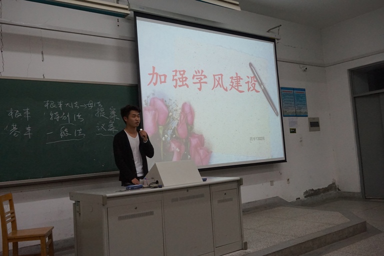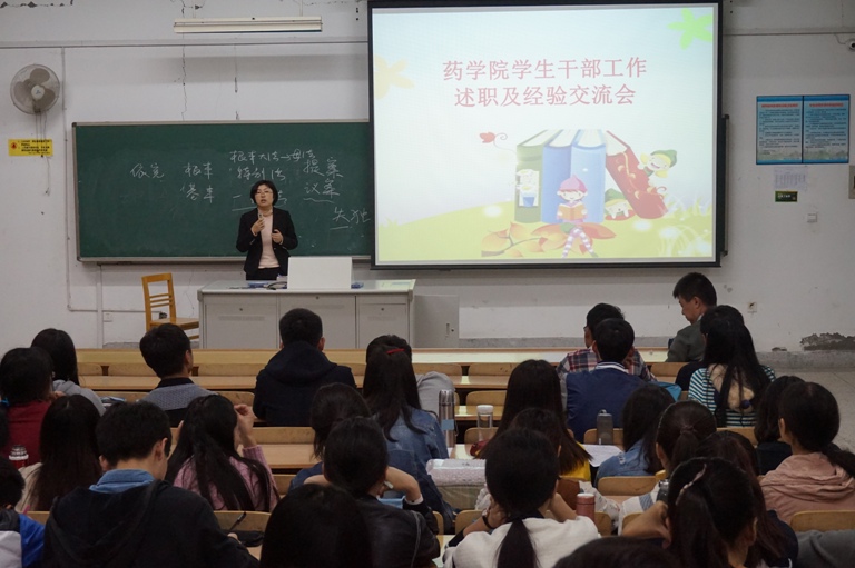 为了总结学生干部的工作情况,加强工作经验交流,巩固学风建设成果,5月9日,药学院于浦江B楼101教室召开学生干部工作述职及经验交流会。本次会议由辅导员王涛老师主持,药学院党委副书记张琪老师以及13级、15级全体学生干部参加了本次交流会。