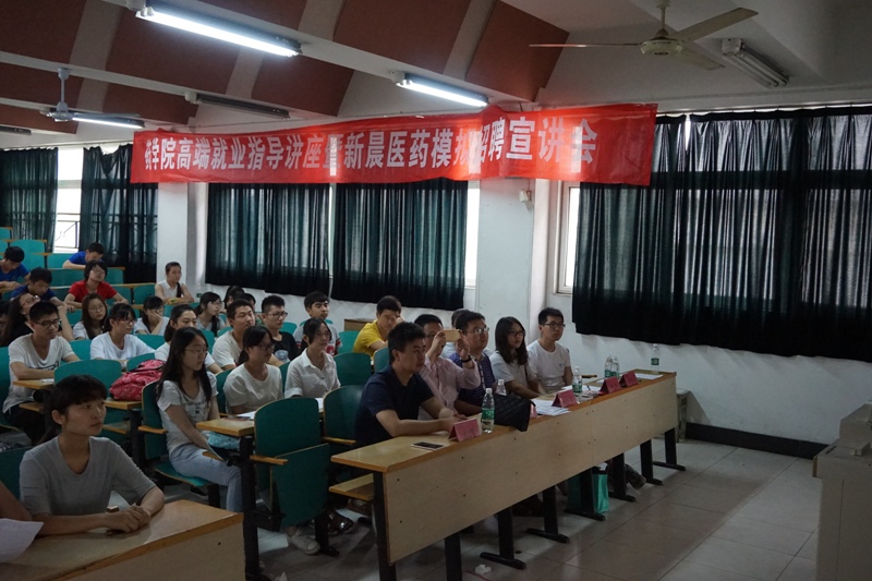 6月15日下午,药学院与新晨医药有限公司合作开展“新晨杯”职场模拟招聘大赛。出席大赛的有新晨药业人力资源主管秦飞经理、人资专员杨青小姐、辅导员王涛老师、优秀毕业生代表李光宇同学、13级参赛选手,全体15级同学观摩本次大赛。