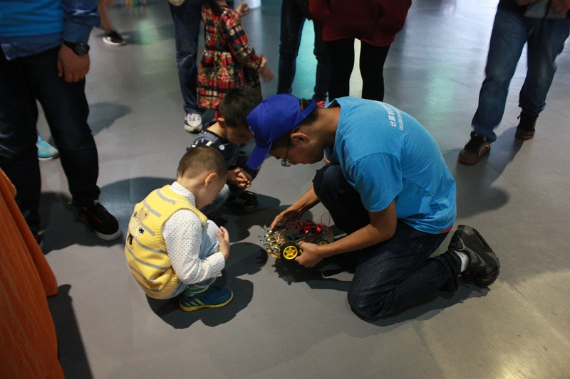 5月28日上午,志愿者们准时到达江苏省科技馆。经过简单的分工布置,志愿者们开始进行准备工作。从搬桌子到搭建会场,再到放置展品,志愿者们忙的热火朝天。半小时后,展区布置一新,游客也陆续到来,各种新奇精致的展品立即就吸引了游人们的眼光。各位志愿者们各就各位,开始为游客们解说展品。光立方发出的眩目光彩,吸引了众多的游客,讲解员计软1501班钱申鹏仔细的讲解了光立方如何用单片机控制,并随着电脑中的音乐旋律变化。另一个展台上,声控LED灯吸引了众多的小朋友。讲解员计1503班王小宇热情地给各位小朋友们讲解声控灯的原理,并亲手实践,现场教小朋友们做起了声控灯。整个志愿活动井然有序,志愿者们不辞辛劳,努力工作,奉献了自己的爱心。本次志愿活动历时两天,展出了避障小车、光立方、声控LED灯、调频收音机、循迹小车等众多作品,均为我院学子的课外实践作品。在本次志愿活动中,我院志愿者们协同合作,协助科技馆为广大市民提供了丰富多彩的科技展示内容。