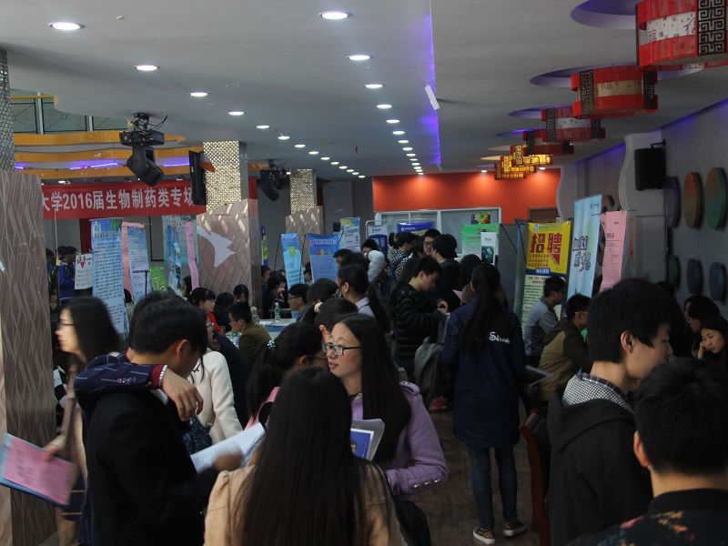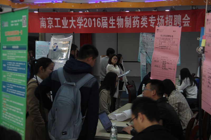 3月30日上午9:00—11:30,生物与制药工程学院在学校大学生活动中心举办“2016年生物制药类专场招聘会”。泰州市人才服务中心招聘部部长方钧、泰州市医药高新区招聘科科长蔡翔率领泰州地区16家企业组团参会,柯菲平医药、正大天晴药业、豪森药业、扬子江药业、诺尔曼生物技术等24家企业参会,生物与制药工程学院全体毕业生、研究生和部分大三学生参会。