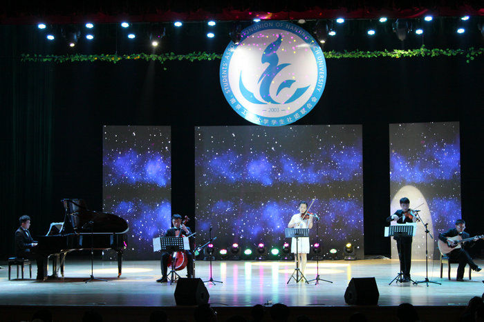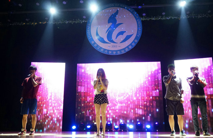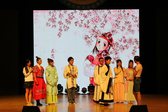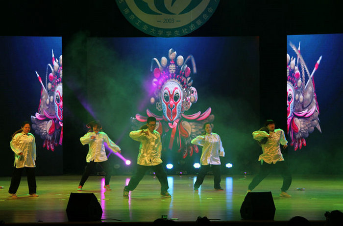 晚会正式开始前,由NST轮滑社、Art滑板街头和AFM表演的外场让正在排队等候的同学们眼前一亮。开场前,来自全球各地的留学生、全国各大高校的学生社团联合会和学校其他学生组织都送来对本次活动的视频祝福,让在场的观众都感受到了全球各地浓浓的情谊。紧接着摇滚联盟献上一首动感十足的《listen》为活动开场,现场观众的热情瞬间被点燃了。一段介绍社团联合会各部门和社团的“社联带你飞起来”的视频正式拉开了晚会的序幕。