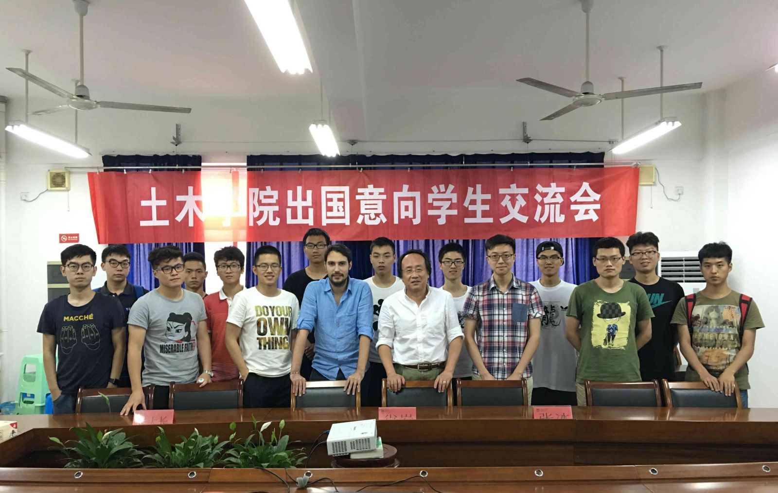 为拓展学生国际视野,给予学生出国留学、交流帮助与指导,土木工程学院于6月13日下午在地坤楼409会议室举办出国意向学生交流会。土木学院院长肖岩教授、土木学院张冰博士、Cristoforo Demartino博士出席交流会。交流会还邀请到了今年成功申请德州大学奥斯汀分校研究生的许众泽,哥伦比亚大学研究生的张石雨,米兰理工大学研究生的徐默三位土木12级学长。学院有出国留学意向的40余名学生参加交流会,会议由院学生会董佑铭同学主持。