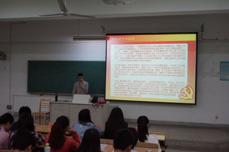 本次演讲比赛由12级的党员们以“对习近平主席系列重要讲话精神以及党章党纪党性的理解”为主题进行演讲,15级的入党积极分子们观摩了本次的演讲比赛。在演讲比赛开始前,学院学生事务办公室主任徐元龙老师对“两学一做”的具体内容和精神作了详细阐述,也对在座的党员和入党积极分子提出要求,希望大家能不断践行“两学一做”,从各方面向党组织靠近,将党章、党纪牢记心中,强化党性修养,在社会主义核心价值观的基础上深入贯彻“两学一做”,为美好中国的建设贡献自己的力量。随后,李光宇、李倩、朱沙阳子等同学以PPT的形式上台演讲,他们图文并茂,绘声绘色。有的同学就“全力推进法治中国建设”谈了自己对依法治国、和平发展的感受和想法;有的同学为我们深度解读了“全面建成小康社会”的具体内容,其看法丝丝入扣,精准到位;还有的同学从我国的经济方面入手,谈了经济新常态对当代大学生的要求,提出我们要时刻跟党走。其中,大家对朱沙阳子同学《中华民族近代以来最伟大的梦想——关于实现中华民族伟大复兴的中国梦》的演讲印象深刻,朱沙阳子同学从何为中国梦,中国梦下当代大学生的历史使命等方面进行演讲,同时还结合自身作为班长的亲身经历让我们感受到作为每一个个体我们都能为中国梦的建设献出自己的力量,中国梦并不遥远,它就在我们的身边。每一位演讲的同学都慷慨激昂,尽情表达着他们对党和国家的忠诚与热爱,让人心中备受鼓舞与激励,整场比赛就在这浓浓的红色氛围中结束了。