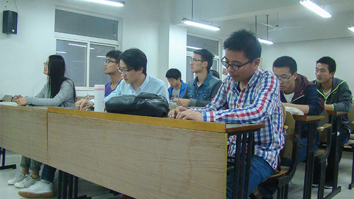 接着由周金鑫和洪柳学长对就业方面和同学们进行交流。他们分析了就业形势以及大学生就业困难的原因以及应该如何对待就业的方法。周金鑫学长针对求职的流程和面试时的注意事项给出了建议,比如一份好的简历,自信和衣着的重要。而洪柳学长则分享了求职经验,并概括了社会岗位对大学生的要求。