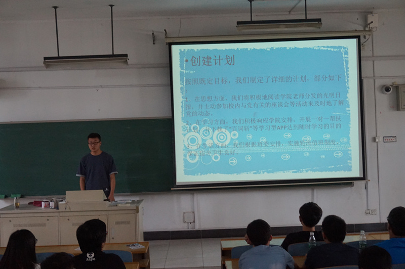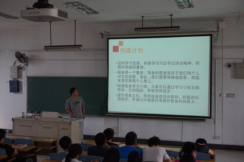 宿舍,是大学生在校学习、生活、休息、娱乐和交流的多功能场所,是学生基础文明教育、行为习惯养成、综合素质提高的重要阵地,可谓是大学生的“第一社会”、“第二家庭”和“第 三课堂”。因此,加强宿舍文化建设,提高寝室的管理,对于促进大学生形成良好素养有着非常重要的意义。几名学生党员在精彩的PPT演讲中展现了他们整洁的宿舍、良好的学习生活氛围、高尚的道德情操,体现了学生党员在宿舍创建中取得的阶段性成果。本次展示活动也让学生党员充分了解了党性的修养,明白了要在学习生活中走在先、学在先、做在先,要严格要求自己,规范言行,发挥表率作用。同时,也让同学们深切感受到学习氛围浓厚、内务整洁的宿舍对自己学习生活的有益影响,利于同学们养成良好的卫生习惯。徐元龙老师做了题为《从小事做起,从我做起,切实发挥党员模范带头作用》的讲话,从党员带头作用的内涵、如何发挥党员的模范带头作用、党员示范宿舍创建步骤三个方面对活动做了总结。他说,宿舍是大学生学习、生活、休息、娱乐和交流思想的重要场所,也是大学生党员发挥先锋模范带头作用的重要阵地。